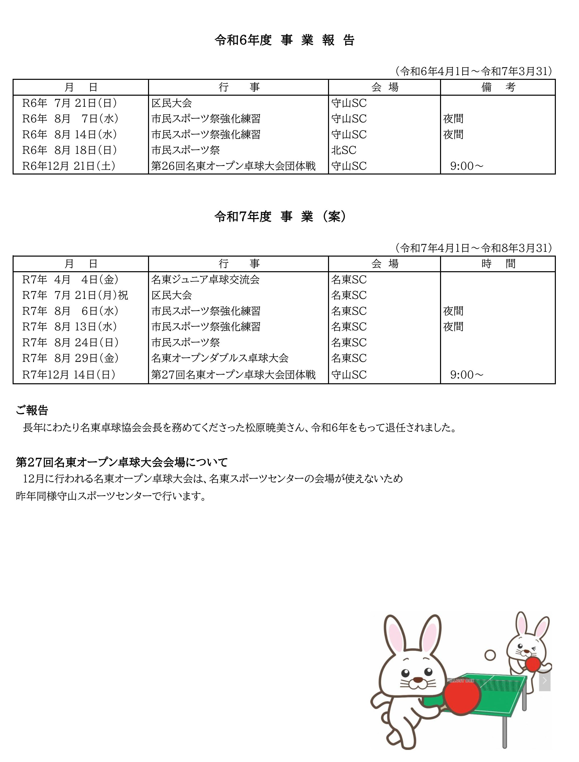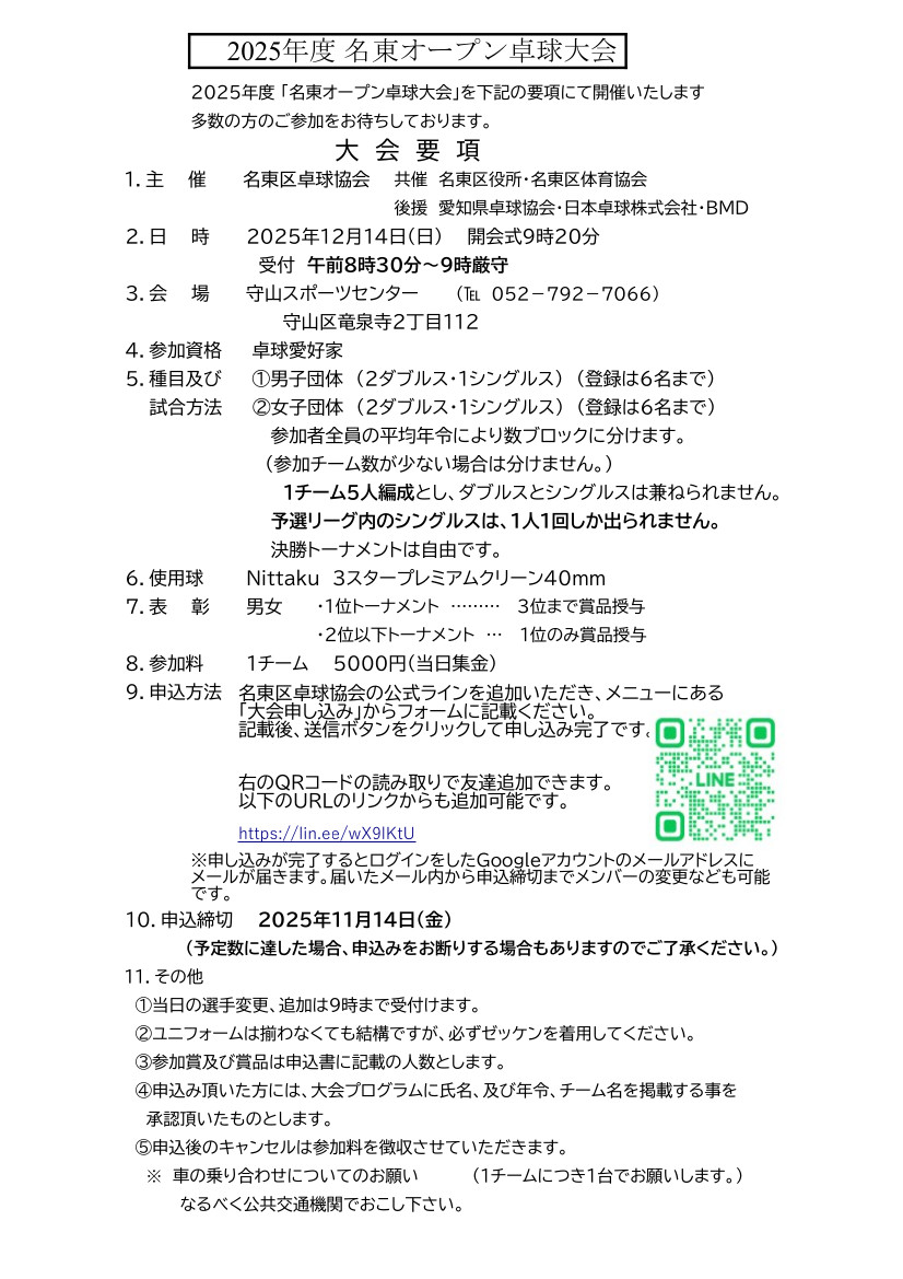 令和7年度名東オープンダブルス卓球大会のお知らせ